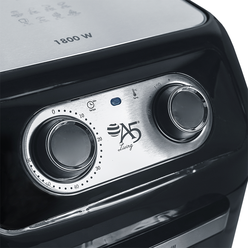 Ela vem com duas bandejas, que assam o alimento por completo, com o cesto removível e um coletor de resíduos que facilita a limpeza.